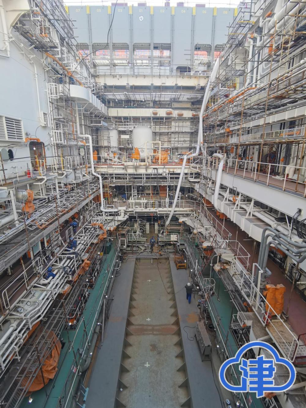 “我现在负责的是大坞内建造的14号船,这个也是16000吨LNG双燃料船,正在进行首部的连续搭载,预计年后即将成型。”在中船天津的船坞内,总装制造部单船主管高腾介绍了他现在的“手头”工作。
