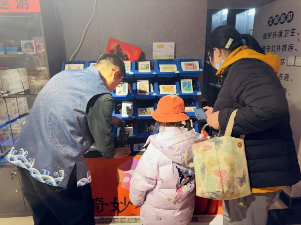 再如地处天后宫背后的天津民俗博物馆,结合新春气氛和古文化街的民俗热潮,灵境智游推出“古物今思”剧本游,游客不仅是简单地参观天津民俗相关展板、实物,还能通过手机扫码看AR数字地图的方式,结合线下道具做解谜游戏,在过程中还可以集印章、兑换奖品,还能用杨柳青年画的制作方式,亲手刷一个福字留念,这些大大提高了游览的记忆点和体验感。