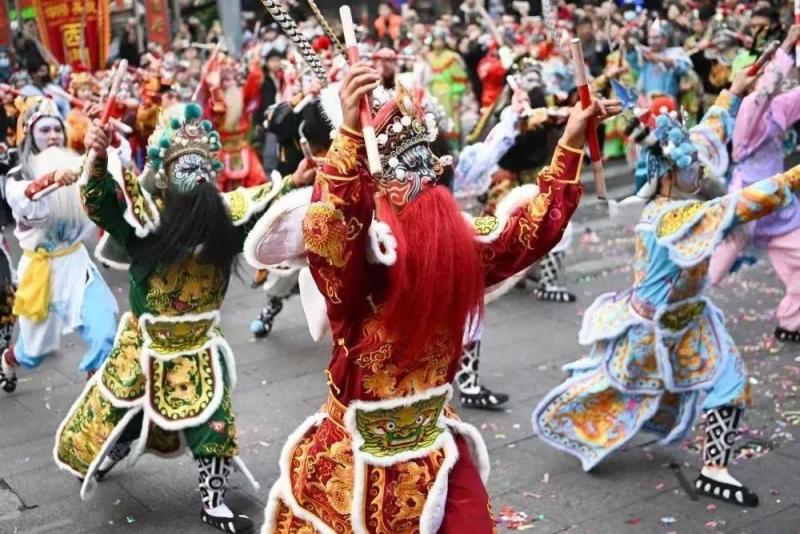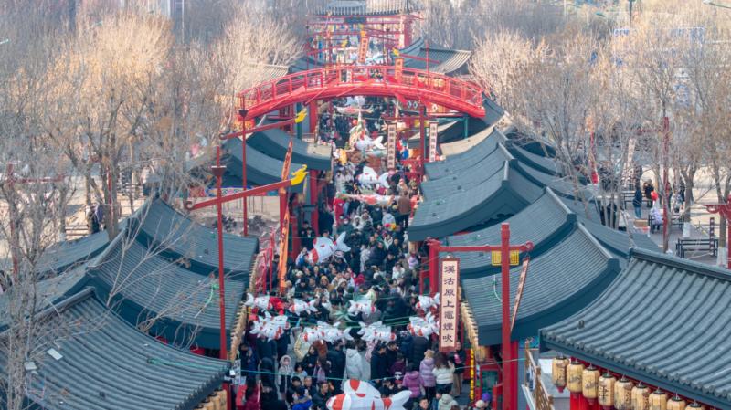 今年春节是“中国春节”申遗成功后的首个新春佳节,“非遗+民俗”燃爆假日。南开区古文化街快闪演出、天津皇会展演和杨柳青年画、泥人张彩塑等非遗、老字号展示展卖活动吸引大量市民游客。特别是古文化街戏楼连续六天的戏曲快闪活动,为津城浓郁的年味增添了文艺氛围。西青区水西公园紧扣《山海经》,打造山海主题灯会;第28届杨柳青灯展,将西青历史文化特色和非遗民俗资源充分融入灯组设计和业态布局,现场灯潮、人潮、国潮涌动。蓟州区第十九届独乐寺庙会、宝坻区第二届新春文化庙会、津南区2025天津万灯启新游园会等,传统年味扑面而来。