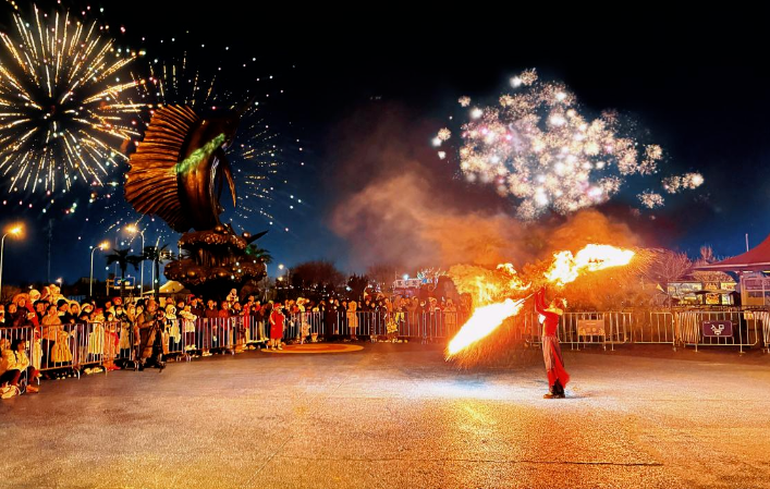 泰达航母主题公园、天津欢乐谷、方特欢乐世界等特色景区分别上演烟花秀、无人机表演、虚拟现实等形式多样的活动,让广大游客切实感受到古韵今风的魅力交织。泰达航母景区特别版大型沉浸式无人机烟火秀倾情上演,英歌舞、梅花桩舞狮等非遗绝活嗨翻全场。方特欢乐世界精彩演出全天轮番上演,深受小朋友喜爱的熊出没明星们率领盛大的巡游队伍闪亮登场,葛沽高跷、二人转、相声等非遗演艺也惊艳呈现。极地海洋度假区以“海洋国潮+非遗民俗”为主题,“龙腾海底”表演精彩绝伦、国际大马戏重磅回归,为市民游客献上欢乐又充满惊喜的新春假期。