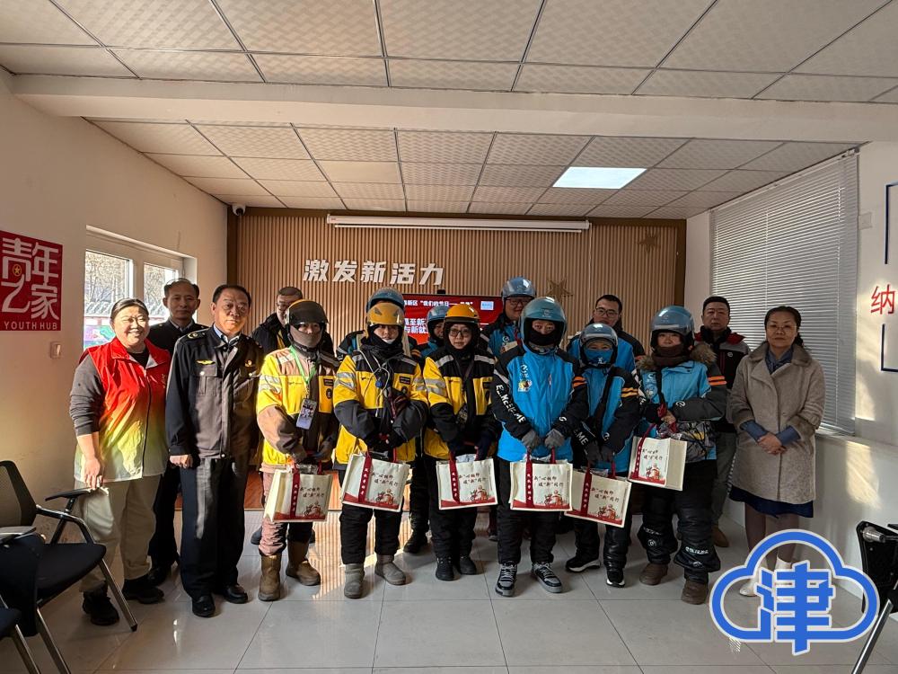 天津北方网讯:2月5日,滨海新区新就业群体(快递外卖员)第一党群中心的社工和志愿者为外地返岗的快递外卖员送上爱心礼包,让复工“骑手”“快递员”第一时间感受到了天津人的温暖。
