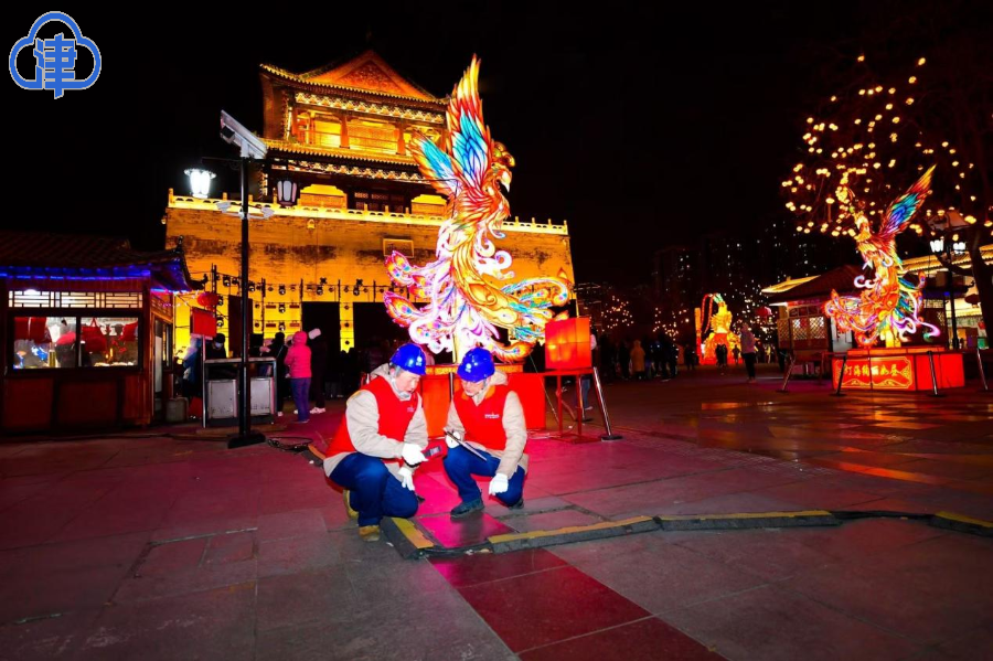 早在活动开始前一个月,国网天津电力便与古文化街管委会和鼓楼文旅相关负责人对接,对鼓楼区域上级电网以及周边商户、步行街的末端供电线路进行全面排查。“我们提前制定了巡视计划,备足了抢修物料,时刻严阵以待。重要时段每两小时就特巡一次,确保鼓楼街区可靠供电,为喜庆团圆添上一份力!”国网天津电力心连心(城西七队)共产党员服务队队员肖峰说。