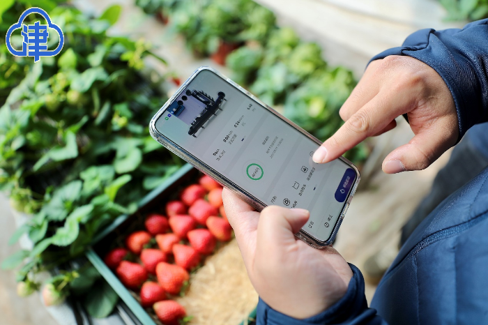 “让农场自己运行起来”。天津由合农业科技服务有限公司总经理孙崧打开手机APP,加名农场大棚内的草莓、西红柿生长情况一目了然。