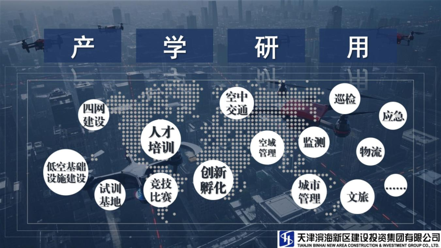 项目深度融合数字化技术,深度参与低空经济基础设施的全方位规划、建设与运维,积极构建“全流程、多维度、数字化”的低空空域运行安全监管与服务保障体系。先后与中国科学院、民航大学、中国民航科学技术研究院等专业机构开展了滨海新区低空领域探索和研究,统筹低空资源开展“通导监感四网基础设施”规划,建设低空经济示范园、地面起降点、空中交通地面枢纽站、能源补给站等地面配套基础体系,步步为营,夯实低空经济发展根基。