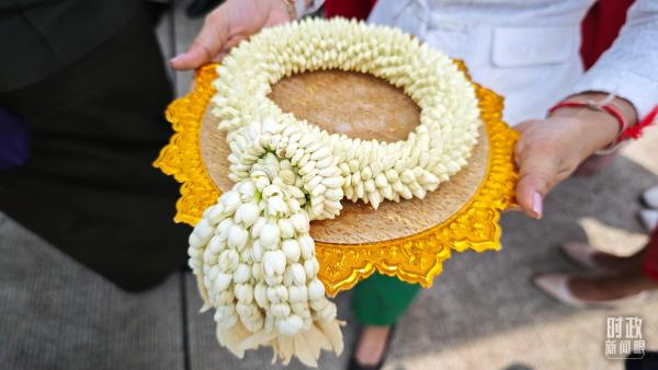 柬埔寨王室珍娜公主向习主席献上的茉莉花手环。(总台央广记者潘毅拍摄)