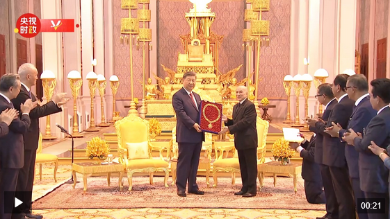 点击图片观看视频:习近平接受“柬埔寨王国民族独立大项链级勋章”