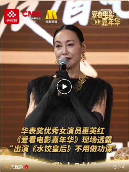 首摘中国电影华表奖“优秀女演员奖”的惠英红,在五一档电影《水饺皇后》中再次贡献细腻表演,《爱看电影嘉年华》录制当晚,她不仅手捧奖杯直达现场,更在讲述中透露自己出演《水饺皇后》不用做功课,因为小时候就住在湾仔。