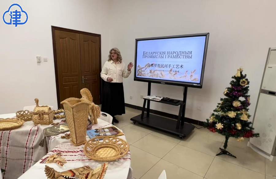在一节白俄语言课上,她的讲桌前摆满了白俄罗斯的民间手工艺品,她对学生说道,“它们是由稻草编制而成的家居装饰品、帽子、玩具、首饰,这些白俄罗斯草编工艺技艺,已经被列入了联合国教科文组织非物质文化遗产代表作名录,每一种草编艺术品花型都有其寓意,是白俄罗斯文化的重要组成部分。”
