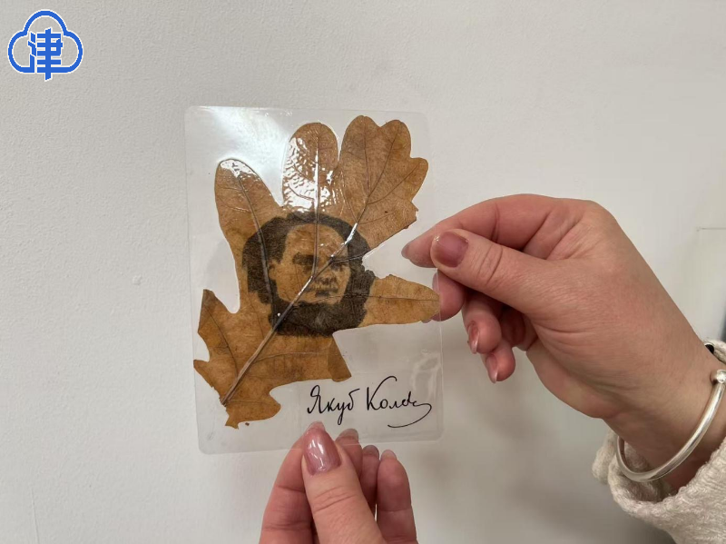 走进雅库布·科拉斯中心,这里一侧的墙面摆着书柜,里面整齐排列着这位白俄作家的书稿,其中还有他的手写文稿复印件,更有由他家院子里树叶制作而成的书签,“通过这种多样、近距离的接触,中国学生可以多种方式了解异国文学。”