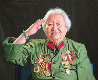 采访抗战老兵王佩环,是在她位于滨海新区的家中。一身笔挺的绿军装,胸前挂满勋章,老人乐观且健谈,即便回忆起艰苦的战争岁月,语调也是积极向上的,慈祥和蔼的笑容里有着历经沧桑后的豁达与通透。