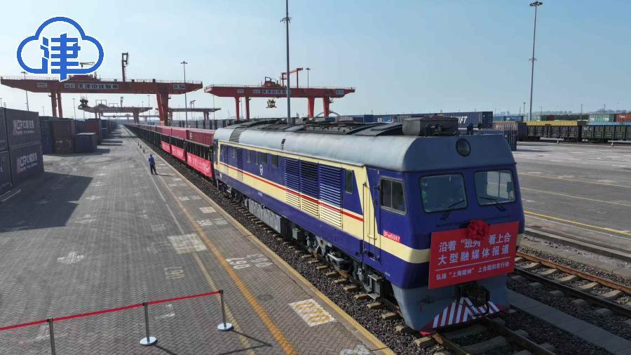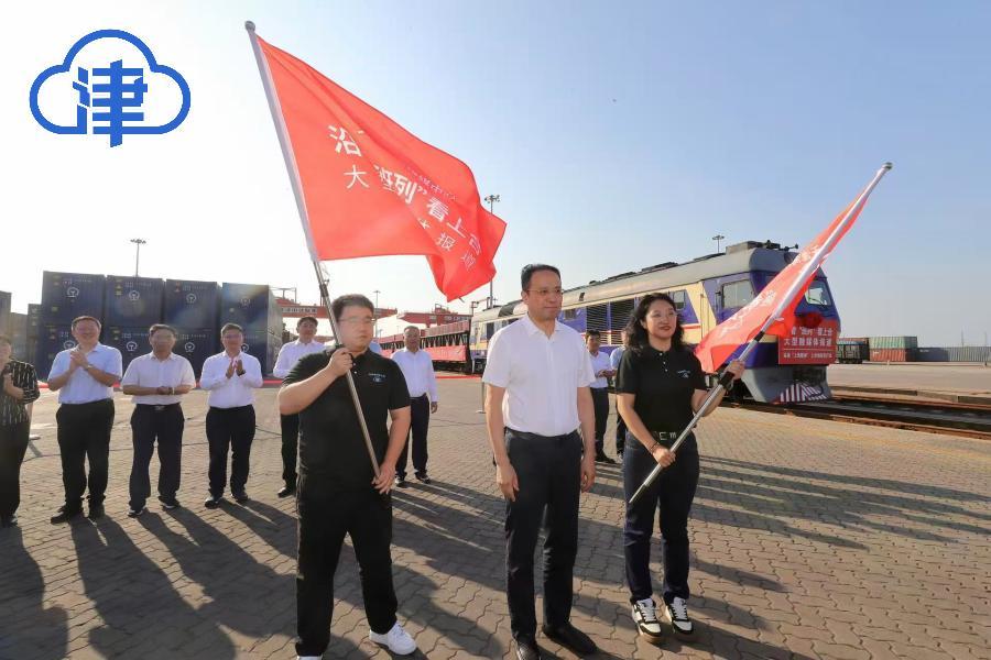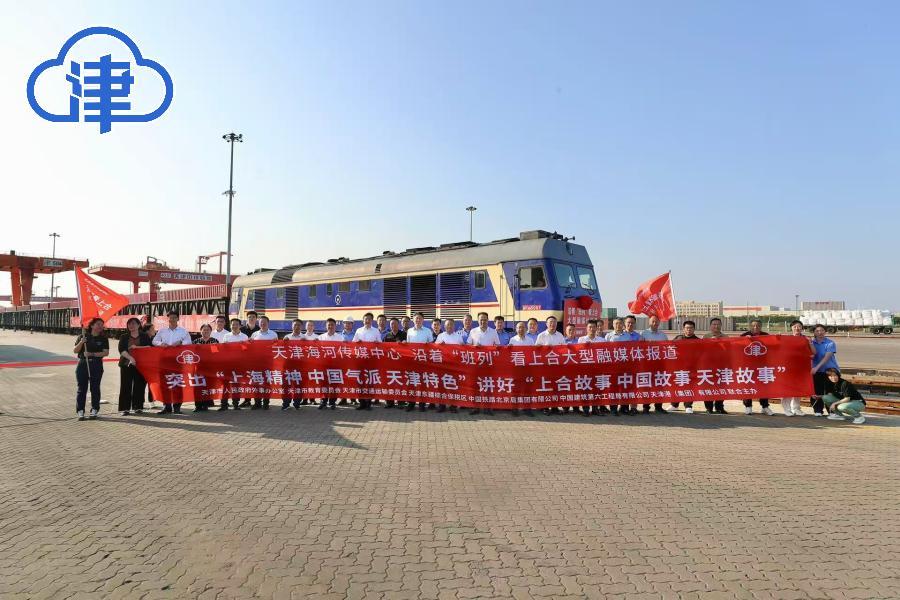 天津北方网讯:8月11日,由津云新媒体联动天津广播策划推出的“沿着班列看上合”大型跨国融媒体报道活动,在中铁天津集装箱中心站正式启动。天津市人民政府外事办公室、天津市教育委员会、天津市交通运输委员会等多部门代表,中国建筑第六工程局有限公司、天津港(集团)有限公司、天津海运职业学院、天津东疆国际班列运营管理有限公司等单位负责人,以及中央驻津媒体、海河传媒中心旗下媒体共同出席启动仪式。