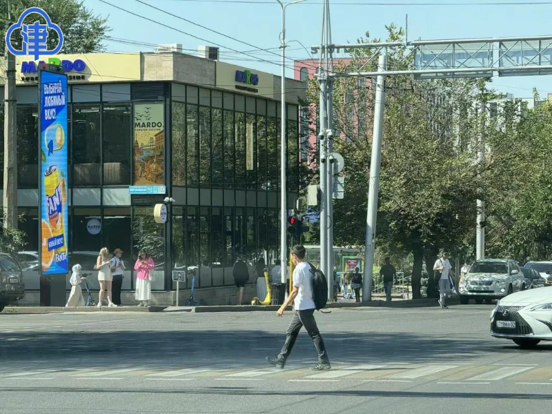 而在街头巷尾,我遇见的则是另一种生活的节奏。阿拉木图绿化丰富,街旁林荫小道蜿蜒而行,共享滑板车是人们常见的出行方式——无论男女老幼,只需在本地App上扫码,就能轻快出发。傍晚阳光温柔,骑行或散步的人脸上都带着松弛的神情。街边的水果摊位把西瓜等水果码得整整齐齐,像一幅色彩鲜艳的画。