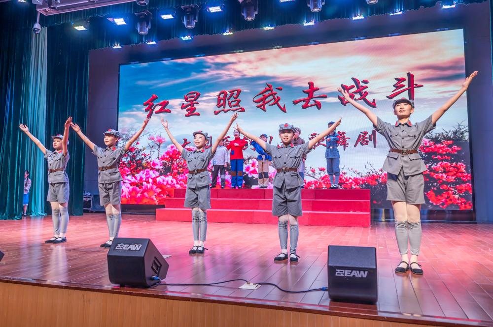 活动以儿童歌舞剧《红星照我去战斗》为主要形式。该剧改编自红色经典电影《闪闪的红星》,通过少年英雄潘冬子及其儿童团伙伴的视角,生动再现了江西苏区的烽火岁月,展现了革命先辈的英勇无畏与斗争智慧。演出吸引了众多居民参与,现场座无虚席,反响热烈。