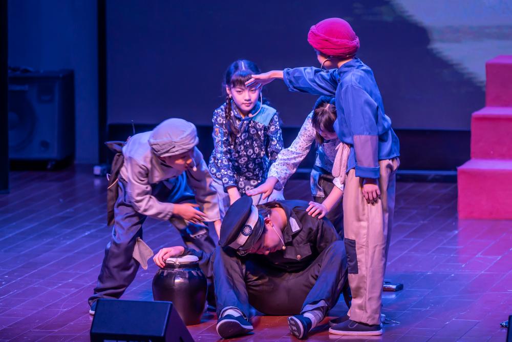 演出伊始,这部承载着红色基因与革命理想的歌舞剧便绽放出璀璨光芒。全剧巧妙融合了戏剧表演、声乐艺术与舞蹈元素,包含26首原创歌曲和8段精彩的舞蹈,最终呈现为一部气势恢宏的歌舞交响剧。尤为可贵的是,剧中所有角色均由6至14岁的少年儿童担纲演绎。小演员们以纯净的歌喉唱响信仰,用灵动的舞姿诠释革命精神,他们用真挚的情感和专业的表演,为革命小英雄们赋予了震撼人心的艺术生命力。
