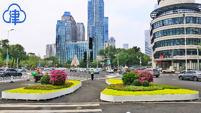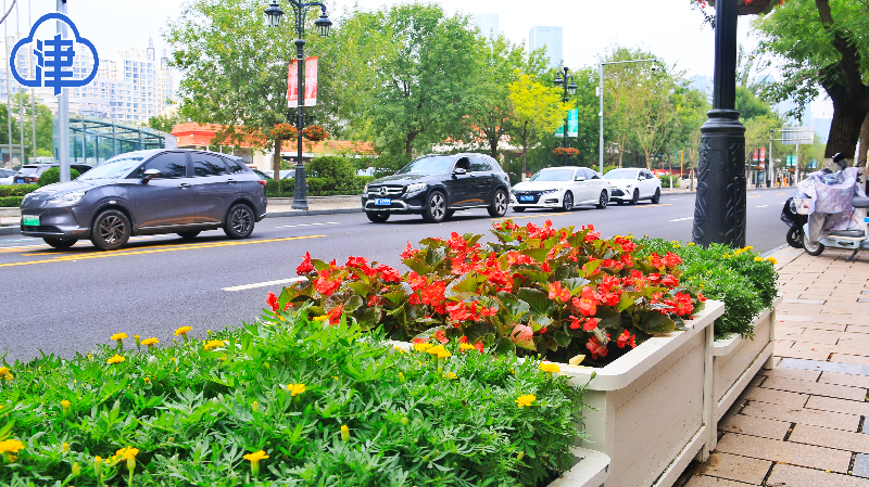 漫步津城街头,友谊路、南京路、卫津南路等主干道两侧,造型各异的花箱花篮错落有致,成为一道亮丽的风景线;从马场道至外环南路,长达数公里的道路旁,高低错落的扇形花箱交相辉映;紫金山路、乐园道等路段则以小花箱与吊盆花篮组合,形成层次分明的立体花境;机场辖区的航站楼周边,桥梁花箱与吊盆花篮点缀其间,为进出港旅客营造出温馨雅致的迎宾氛围。