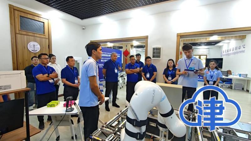 “我们根据乌兹别克斯坦经济社会发展需求,以及塔什干国立交通大学的专业设置,确定工坊重点围绕信息技术、智慧物流两个专业开展教学。”王明春副院长指向工坊内的功能分区,“对应这两个专业,我们建设了三个教学区:信息技术教学区、工业机器人教学区、智慧物流教学区。这三个教学区既各有侧重,又密切关联——信息技术教学区教软件技能,工业机器人教学区教硬件技能,智慧物流教学区提供应用场景,让学生实现‘软硬件技能+场景应用’的综合掌握。”