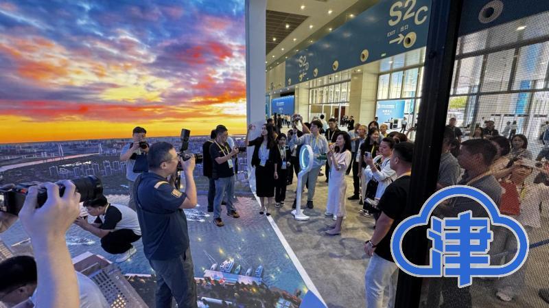 在AI数字人多场景即时播报区,记者站在绿幕前拍摄照片即可定制生成专属数字人,输入文字稿件后,数字人能以中、俄、英文进行新闻播报。“我们还设置了世纪钟、天津之眼等天津地标背景,将数字人制作成特色冰箱贴纪念品。”工作人员介绍说。