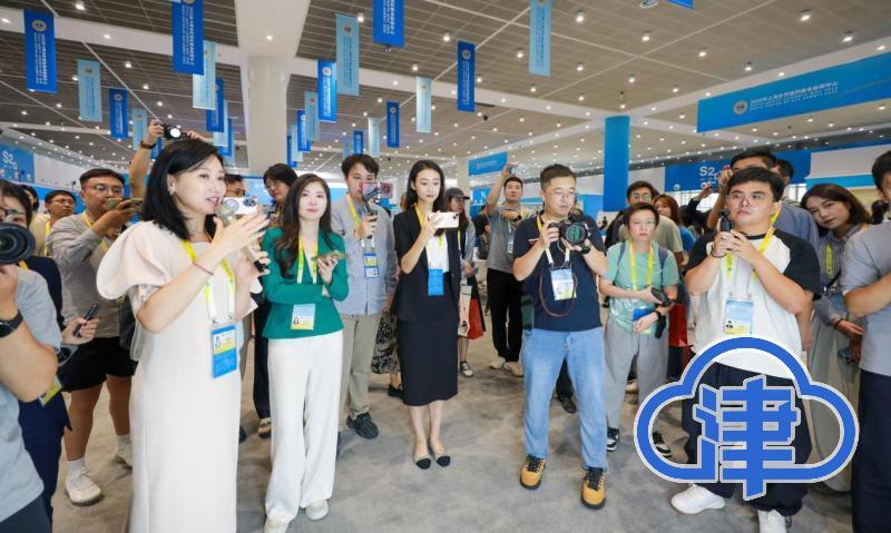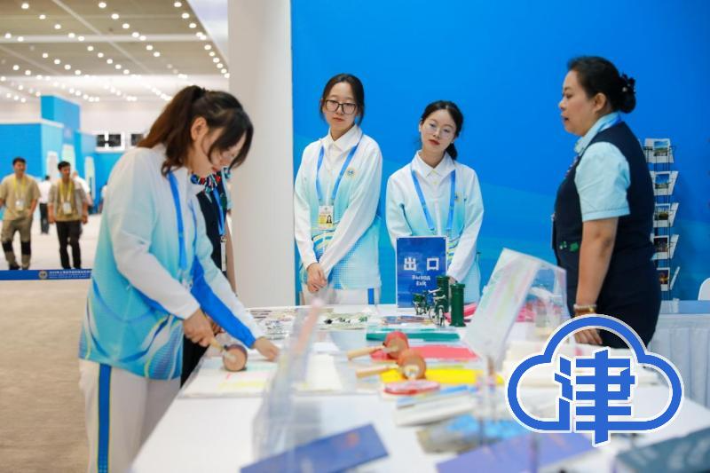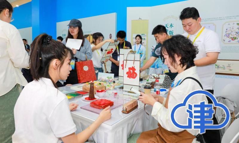 非遗互动区则呈现了“一湾海河绘非遗”的匠心。泥人张彩塑展台前,一件件栩栩如生的彩塑作品陈列橱窗;杨柳青木版年画工坊里,木版雕刻与手工填彩相得益彰;曾氏华服展位中,传统图样的华服展品和盘扣饰品呈现了非遗魅力。