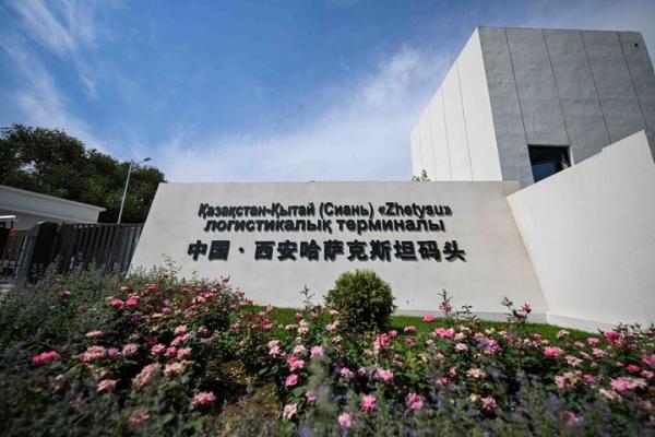 这是2025年8月1日在哈萨克斯坦阿拉木图拍摄的中国·西安哈萨克斯坦码头标识。新华社记者 李任滋 摄