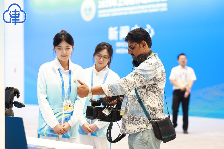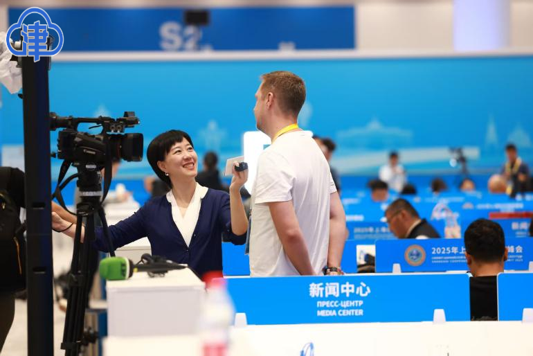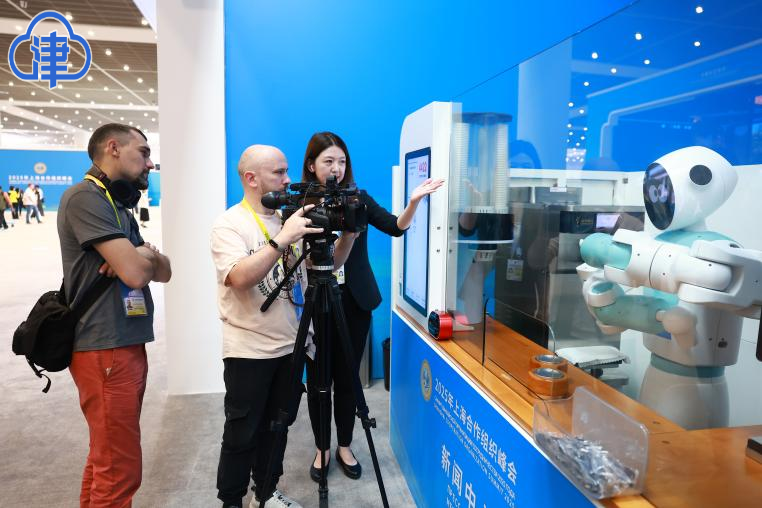 内容提要:2025年上合组织峰会新闻中心运行次日,科技与文化体验活动持续吸引中外媒体记者驻足。