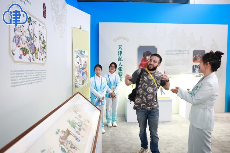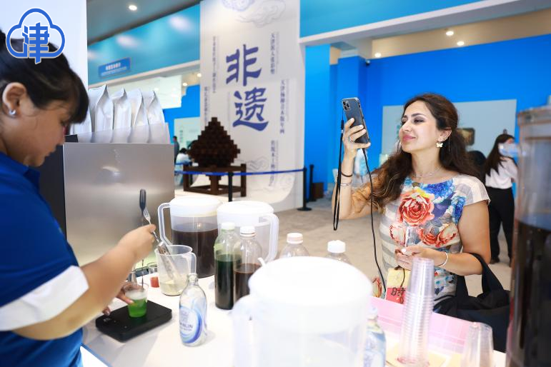 非遗展区“一湾海河绘非遗”汇集泥人张彩塑、杨柳青木版年画与曾氏华服等传统技艺,记者们观摩并体验制作流程。中医理疗区也备受青睐,推拿、号脉服务排起长队,融合传统配方的现代养生饮品成为现场“网红”,供记者消暑提神。