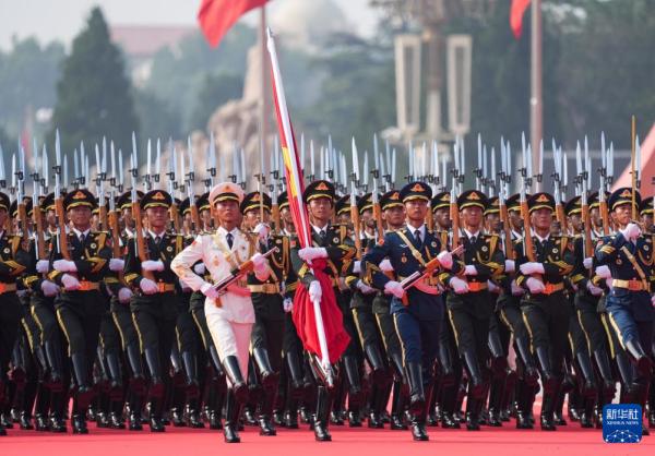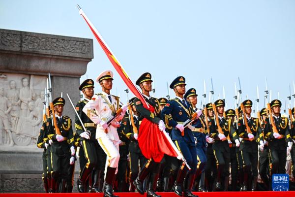 9月3日,纪念中国人民抗日战争暨世界反法西斯战争胜利80周年大会在北京隆重举行。这是国旗护卫队在行进中。