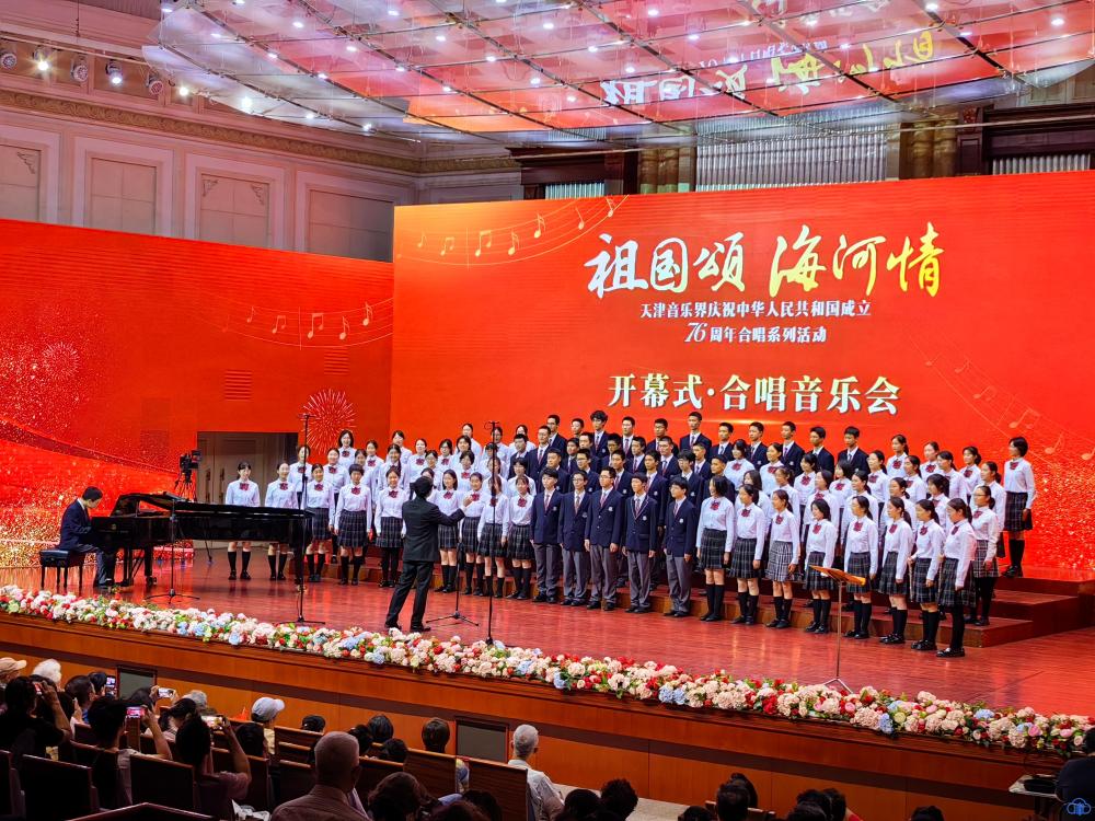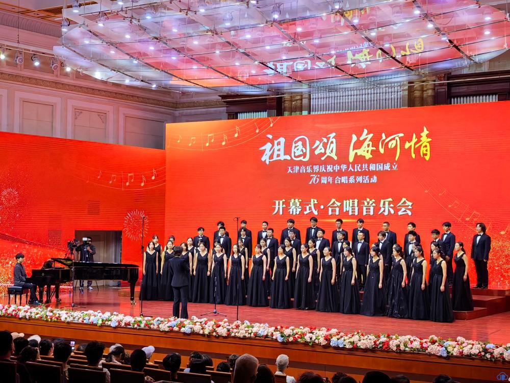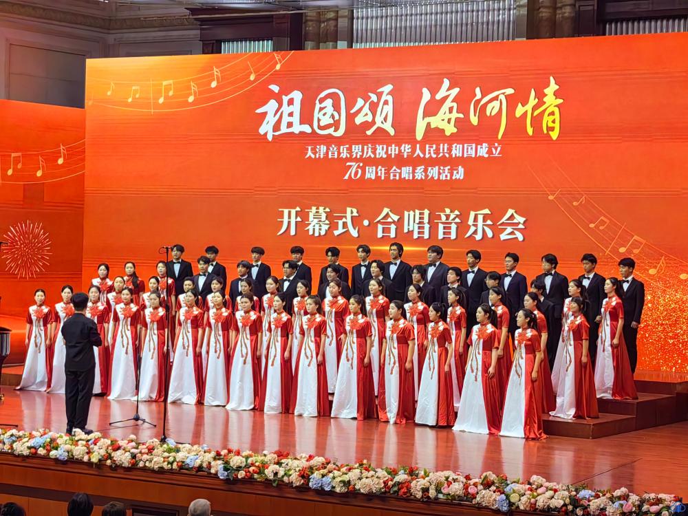 天津北方网讯:多彩金秋丹桂飘香,海河之滨乐声飞扬。为热烈庆祝中华人民共和国成立76周年,由天津市文联、天津市音乐家协会精心指导,天津市音乐家协会合唱专业委员会、天津市音乐艺术发展促进会承办的“祖国颂 海河情——天津音乐界庆祝中华人民共和国成立76周年合唱系列活动”于9月24日-28日举行。