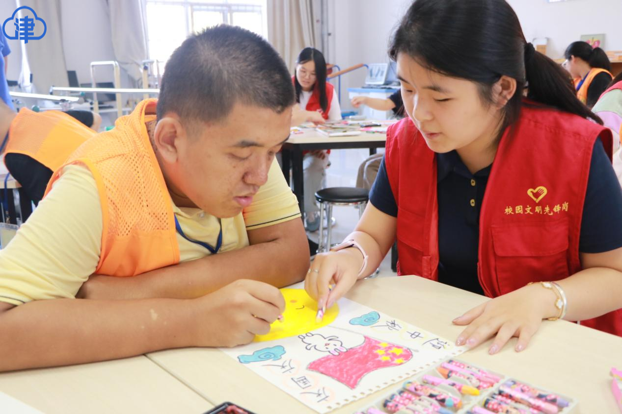 金秋送爽,丹桂飘香。为庆祝中华人民共和国成立76周年,弘扬爱国主义精神,促进残健融合,近日,天津职业大学公共管理学院邀请天津市爱众津南阳光工场的残疾人朋友们走进校园,共同开展“庆中秋·迎国庆”手作实践与文艺演出系列活动。此次活动是天津职业大学爱众残疾人阳光工场自2024年12月成立以来常态化服务的重要延伸,也是深化校企联动、推进共融教育的一项务实举措。