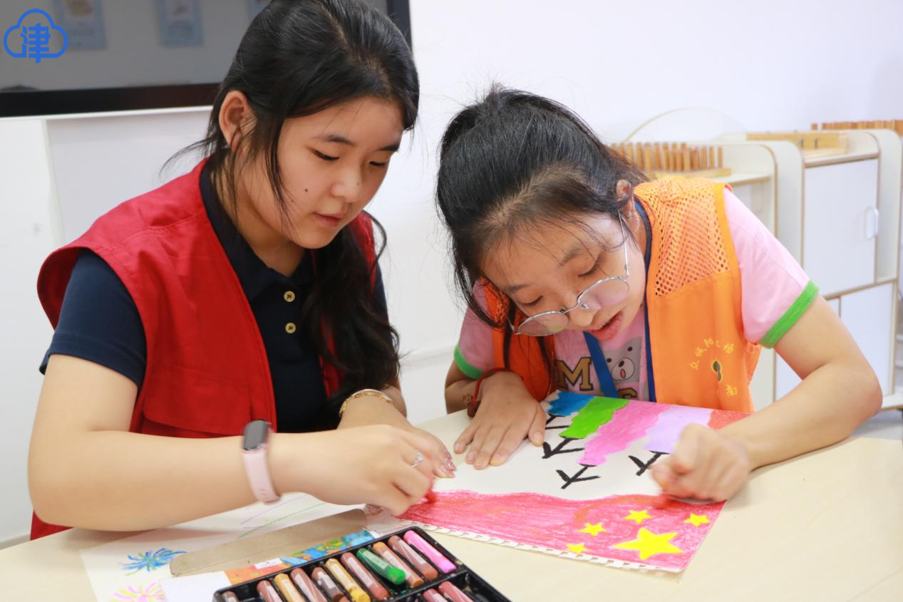 活动在温馨融洽的氛围中拉开帷幕。手作实践环节,学前教育专业学生充分发挥专业特长,耐心指导残疾人朋友进行爱国主题绘画创作,从构图到色彩一一细致讲解,帮助大家迅速融入创作氛围。在传统非遗“毛猴”制作环节,残健双方携手合作,巧妙融入国庆元素与中秋意象,一件件生动有趣的作品,既传递着家国同庆的喜悦,也凝聚着携手同心的温情。