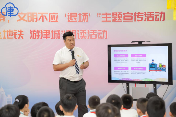 活动现场,天津实验河北区望海小学的4位同学声情并茂地诵读了《坐地铁 游津城》中的故事,用童声诠释了地铁与城市的文化联结。公益媒体人宋歌现场发出倡议,呼吁市民将文明礼仪融入日常出行。