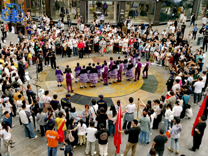 天津北方网讯:10月1日,熙熙攘攘的金街上充满着喜庆祥和的氛围。来自本市大中小学的学生们身着节日盛装,手持五星红旗,用嘹亮的歌声唱响同一首歌,庆祝中华人民共和国76周年华诞,祝福祖国繁荣昌盛,国泰民安。