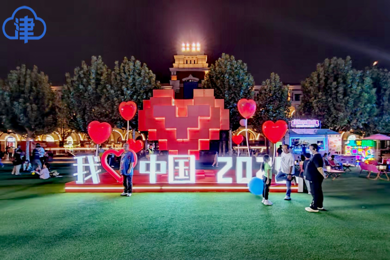不仅仅是金街,10月1日的和平区处处涌动着对祖国的祝福。节日期间,和平区在民园广场、金街、天津之心等多点位设置“一颗红心”,供游客打卡拍照,留下节日美好回忆的同时,也为祖国母亲庆生。