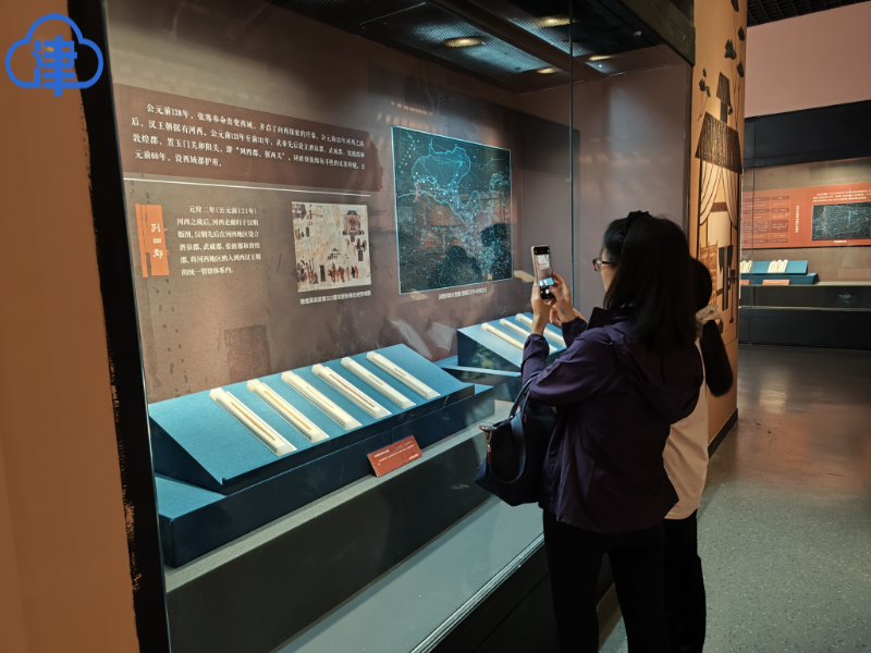天津博物馆图书资料部策展人杨晓辉介绍,由天津博物馆和甘肃简牍博物馆联合举办,以荣获2023年度全国博物馆十大陈列展览精品奖的甘肃简牍博物馆基本陈列为基础,分“简牍时代”“简述丝路”“边塞生活”和“简牍墨韵”四个单元,通过260余件/套展品,讲述简牍发现的历史、简牍中壮阔的丝路故事、汉代边塞居民的日常生活和汉简中蕴含的书法艺术。