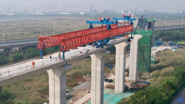 天津轨道交通Z2线08标项目共需架设预制箱梁196片,项目团队从施工方案、工艺流程、机械设备、人员配置及安全质量管控等各个环节提前进行周密部署安排,重点对箱梁运输路线、吊装方案及应急预案等进行详细规划。同时,组织现场管理人员和作业人员观看箱梁架设预演视频、安全警示教育片;严格执行标准化施工流程,逐项核对施工进度、通报安全隐患,确保责任落实到人。截至目前,项目部已完成箱梁架设80片,占项目总工程量的40.8%。基坑开挖、桥梁下部结构等关键工序也在同步推进。