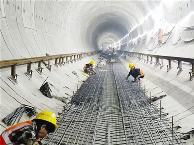 地铁8号线铺轨现场