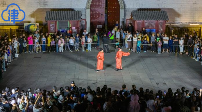 与此同时,一系列充满津门韵味的曲艺快闪活动也同步上演,为静谧的夜晚增添了灵动与欢快。