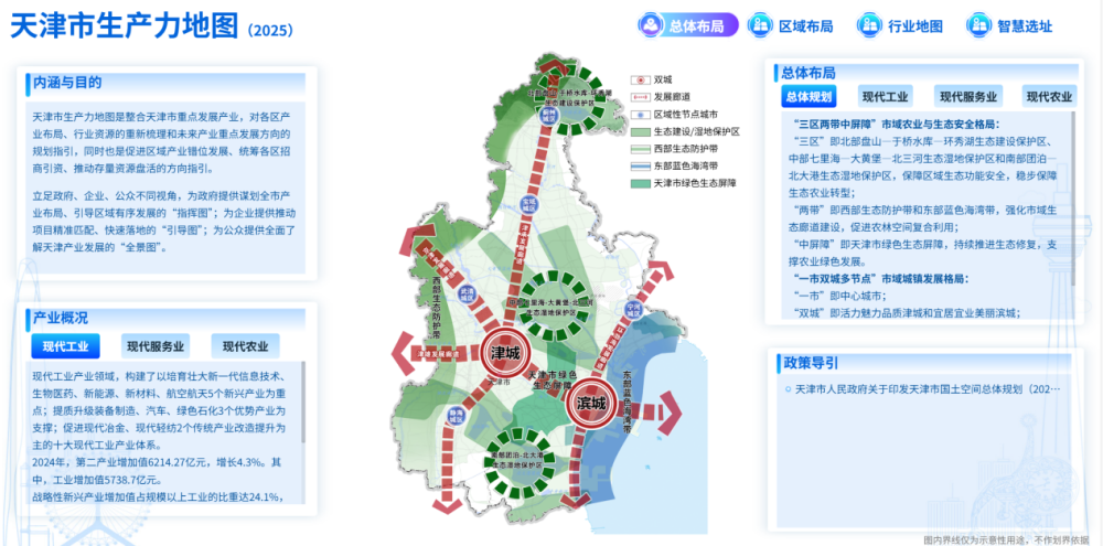 世亚低空科技(天津)有限公司总经理王阳,道出对这张地图的认可:“‘十四五’规划强调产业布局优化与企业发展赋能,《天津市生产力地图(2025)》恰好呼应这一要求,以可视化方式将抽象产业规划转化为直观空间布局。对企业而言,它就是一份精准‘产业导航图’,不用耗费大量人力物力调研,就能‘一图读懂’对应领域整体生态、政策导向与资源富集区,大幅降低信息获取门槛和决策成本。”