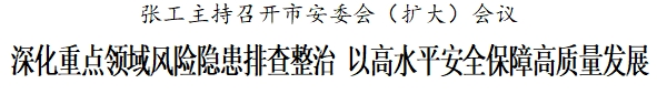 10月26日下午,市安委会(扩大)会议在天津礼堂召开。市委副书记、市长张工主持并讲话。他强调,要深入学习贯彻习近平总书记关于安全生产的重要论述和重要批示精神,认真落实国务院安委会部署和市委工作要求,坚持人民至上、生命至上,准确把握当前安全生产形势要求和工作规律,压紧压实重点领域安全生产责任,落实落细专项行动各项任务举措,坚决防范遏制重特大事故发生,以高水平安全保障高质量发展。