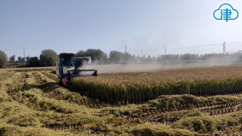 于田县的天津小站稻正在秋收。 照片由受访者提供