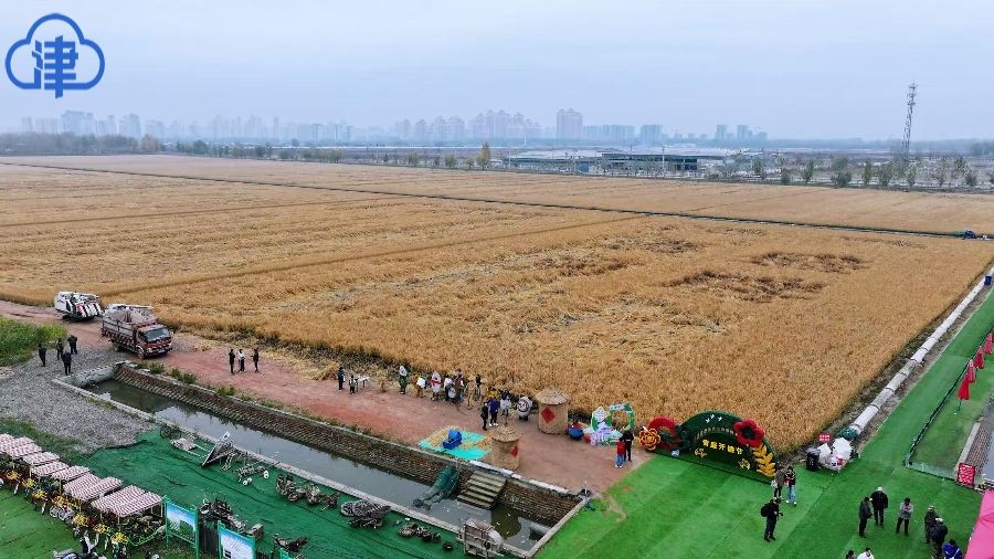 内容提要:金秋送爽,稻谷飘香。近日,北辰区青光村广袤的稻田里一片金黄,沉甸甸的稻穗随风摇曳,勾勒出一幅动人的丰收画卷。