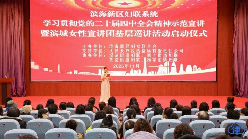 天津北方网讯:11月19日,滨海新区妇联系统学习贯彻党的二十届四中全会精神示范宣讲暨滨城女性宣讲团基层巡讲活动启动仪式成功举办,来自全区各领域妇联执委、妇联主席及干部、先进典型代表、巾帼宣讲员代表和基层妇女群众代表等150余人齐聚一堂,深入学习领会党的二十届四中全会精神,凝聚起奋进新征程、建功新时代的巾帼共识与力量。