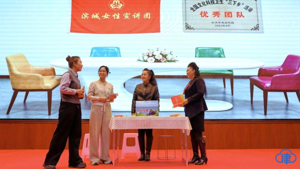 紧随其后,滨城女性宣讲团全新创编的宣讲情景剧《滨姐有约》精彩亮相,巾帼宣讲员们以思想碰撞会的形式实景演绎,将党的二十届四中全会精神、“十五五”规划建议、全球妇女峰会精神及新修订的《天津市妇女权益保障条例》等核心内容,巧妙融入剧情之中。