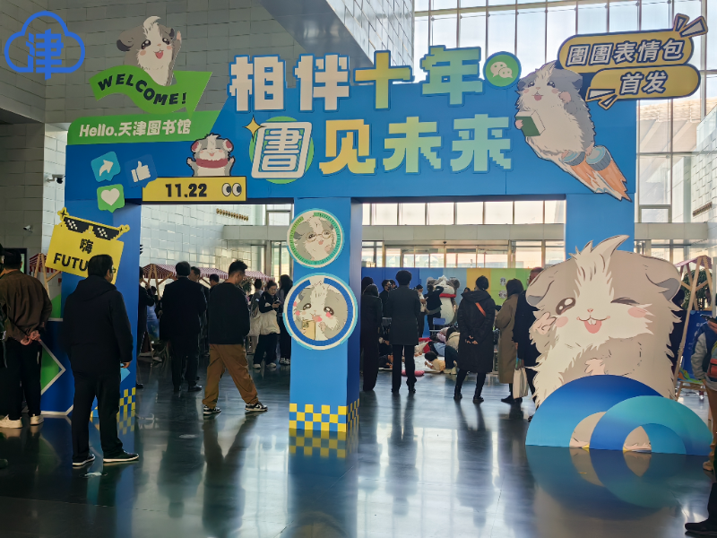 天津北方网讯:2015—2025,十年时光悄然流转。11月22日,天津图书馆文化中心馆区一楼大厅化作一片温暖欢快的海洋,“相伴十年·圕见未来”天津图书馆微信服务号十周年庆暨“圕圕”表情包首发活动在这里温馨举行。