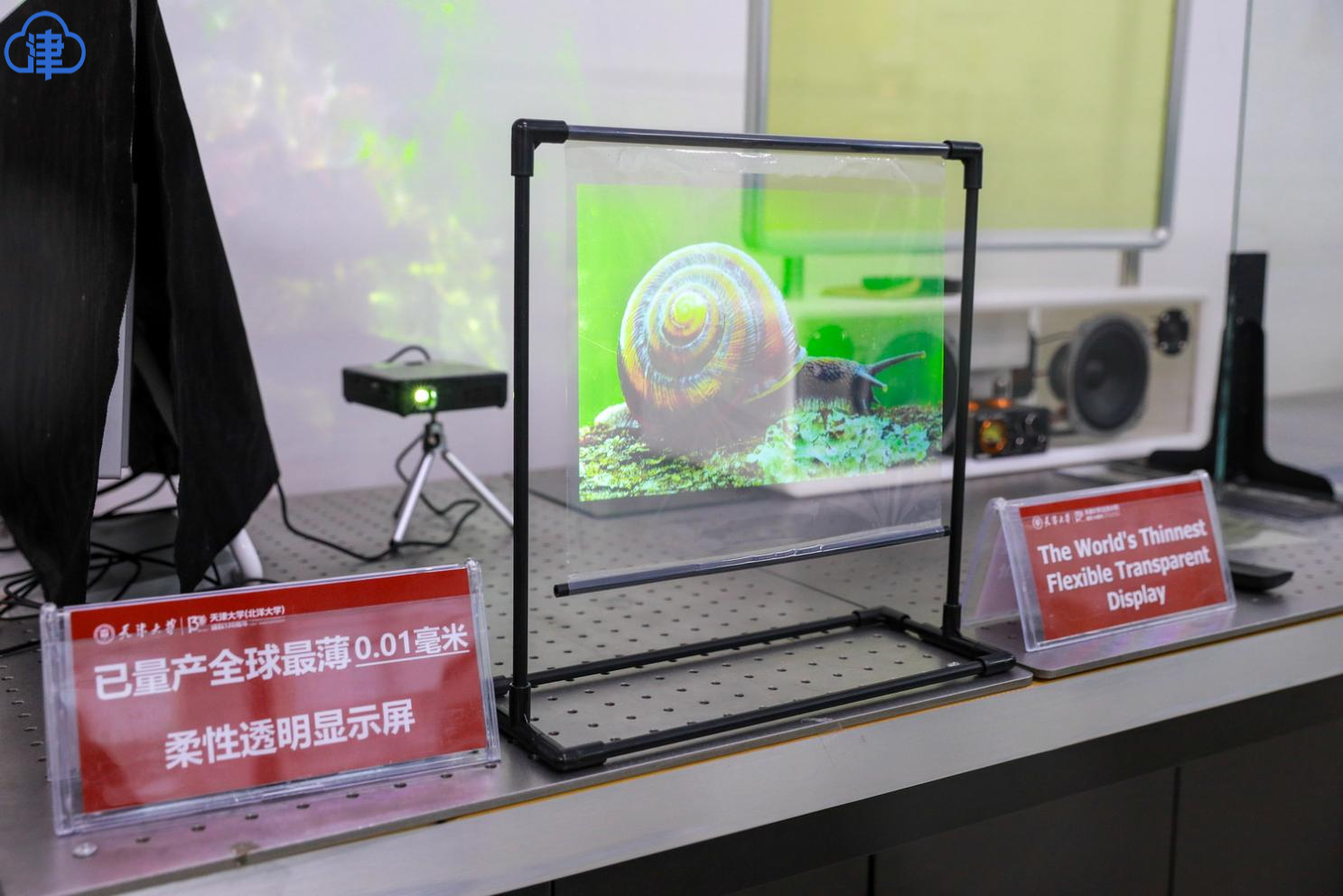 在天津大学智能传感功能材料全国重点实验室里,一块看似普通的透明玻璃正悄然改变人们对“屏幕”的认知。它薄如蝉翼——仅0.01毫米,约为头发丝的三分之一;它通体透亮——透明度超过90%,但它却能清晰呈现2500ppi的超高分辨率图像,是视网膜屏的6倍,50英寸屏幕分辨率可达惊人的110K。