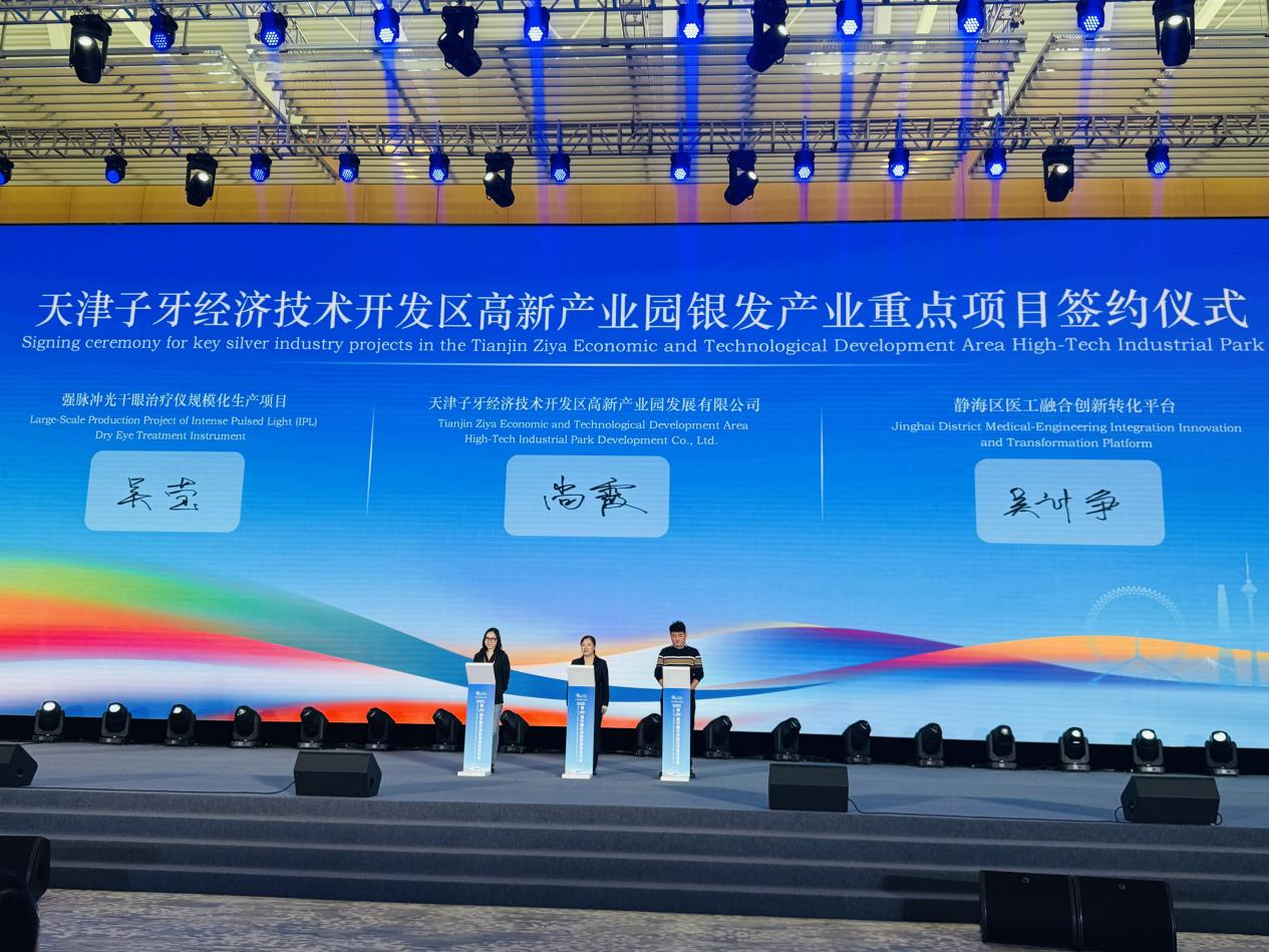此外,在银发经济产业合作交流大会上,高新产业园发展有限公司负责同志围绕“区位赋能优势、产业布局规划、保障服务举措、未来发展愿景”四大维度,对园区进行全方位推介,让现场企业直观感受到园区的发展优势。作为此次展会的“重头戏”,高新产业园还签约了强脉冲光干眼治疗仪规模化生产、医工融合创新转化平台两大重点项目,不仅为区域银发经济高质量发展注入新动能,更按下了国家级银发经济产业园建设的“加速键”。