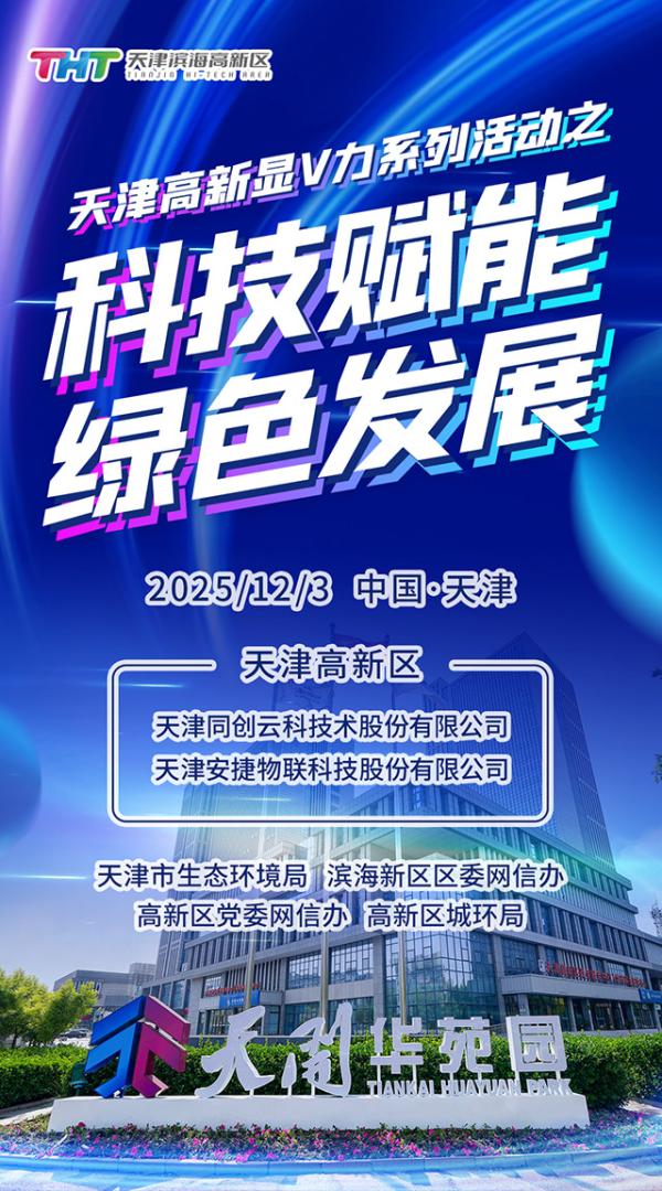 2025年是“绿水青山就是金山银山”理念提出20周年,也是我国“双碳”战略纵深推进的关键之年。为展现天津高新区科技赋能绿色发展的丰硕成果,由高新区党委网信办联合市生态环境局、高新区党建部、高新区城环局、融汇景苑社区共同举办的2025“天津高新显V力”第四季网络主题宣传活动即将启动。12月3日,活动将以“科技赋能 绿色发展”为主题,组织网络大V与网络媒体走进天津同创云科技术股份有限公司和天津安捷物联科技股份有限公司,实地探访绿色环保理念的落地实践与节能低碳技术的创新突破。