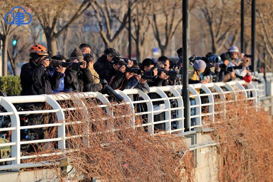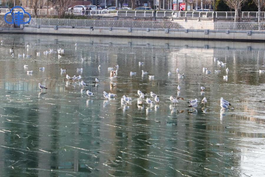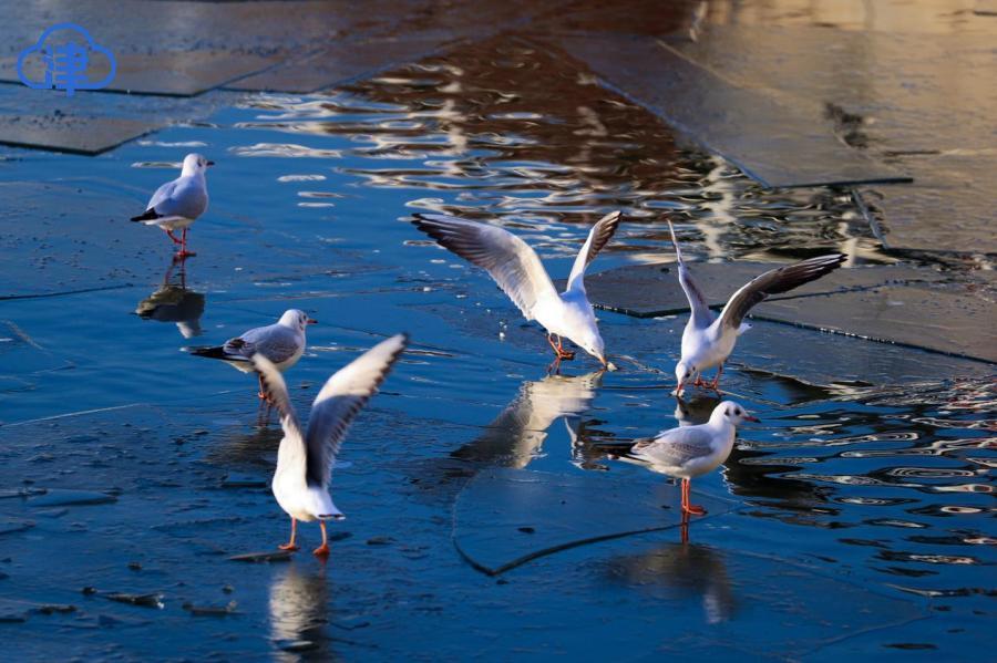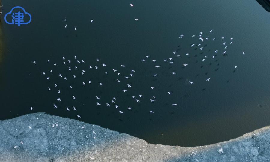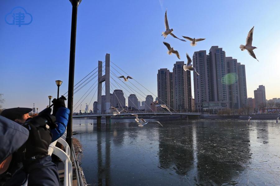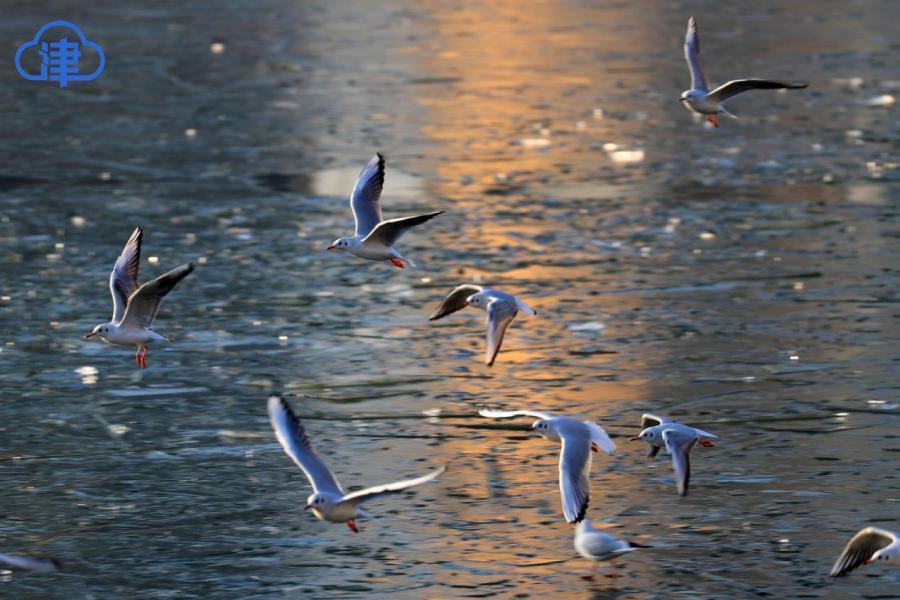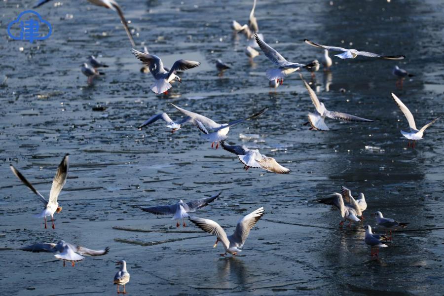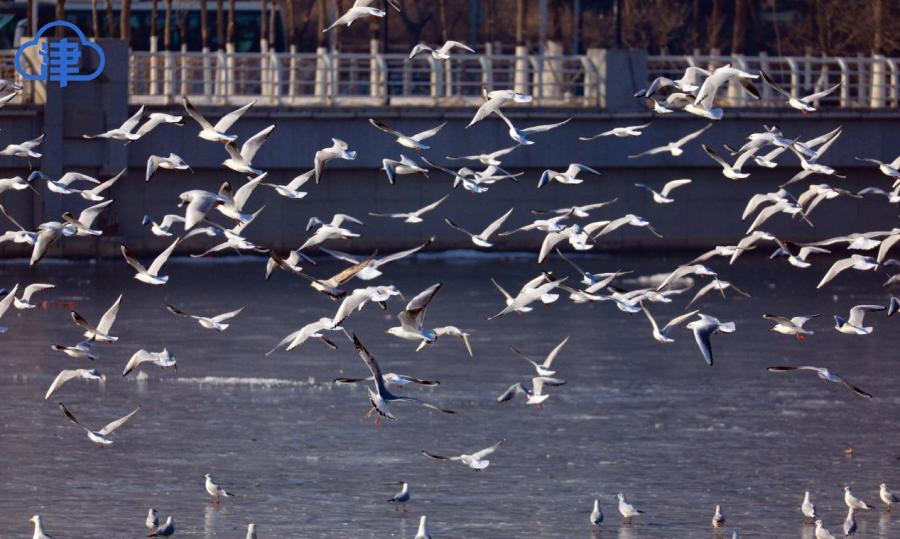 天津北方网讯:岁暮天寒,海河之上开始浮现片片薄冰。成群的红嘴鸥与银鸥在浮冰上空盘旋飞舞,形成一道灵动风景。这些候鸟每年准时从西伯利亚迁徙至此越冬,已经成为天津人的“常客”。这些洁白的“精灵”时而俯身掠过水面捕食,时而优雅接住空中食物,为萧瑟的冬日注入勃勃生机。