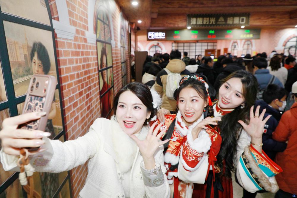 与此前开通的前往蓟州的“津旅时光号”列车不同,本趟列车进行了全新“升级”。通过沉浸式复古场景和文化体验,与旅客交通出行相结合,让豆汁儿焦圈与煎饼果子相遇、北京胡同与天津小洋楼呼应、京剧与相声对话。从站台到车厢,打造“一程一景、一厢一戏”,串联起多种形式的沉浸式演出与互动体验。列车还被打造成一座“非遗体验馆”,非遗传承人手把手教授传统工艺技巧。另外,裸眼3D项目“时光穿梭机”全新亮相后,游客可身临其境地感受天津的历史文化变迁,奇幻场景令人流连忘返。