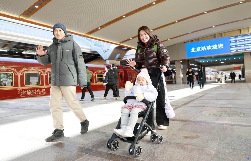 天津北方网讯:2026年1月1日,“津旅时光号”天津北站—北京站线路首趟列车正式开通运营。