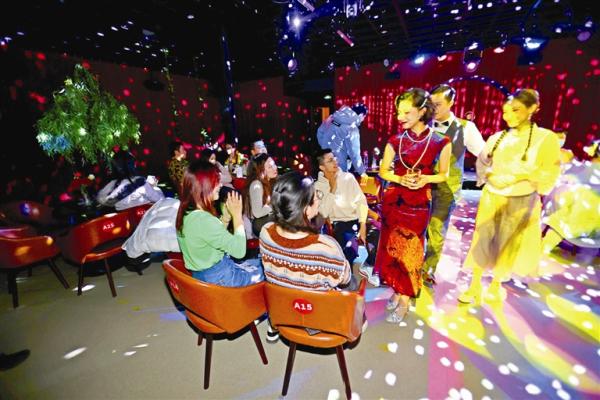假日期间,北方演艺集团两部孵化新剧——音乐剧《熊猫》沉浸版、摩登剧秀《夜莺》分别在大悦城牛奶剧场和中国大戏院上演。图为摩登剧秀《夜莺》。记者 姚文生 摄